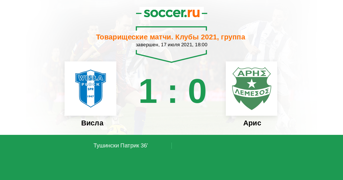 Протокол матча Висла против Арис