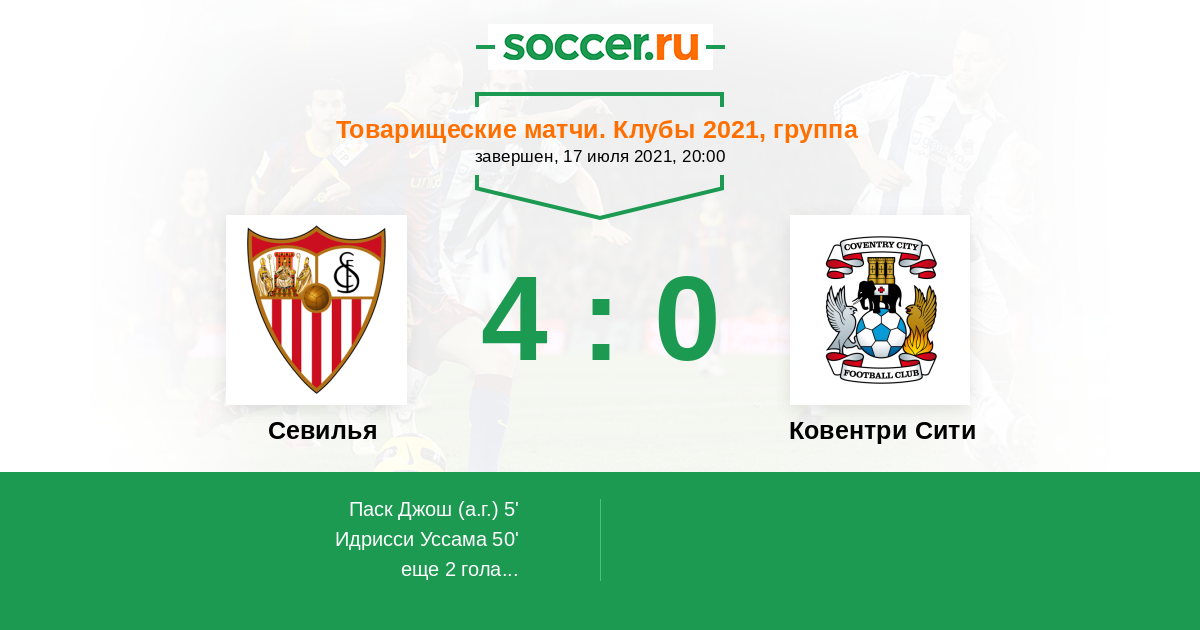 Протокол матча Севилья против Ковентри Сити