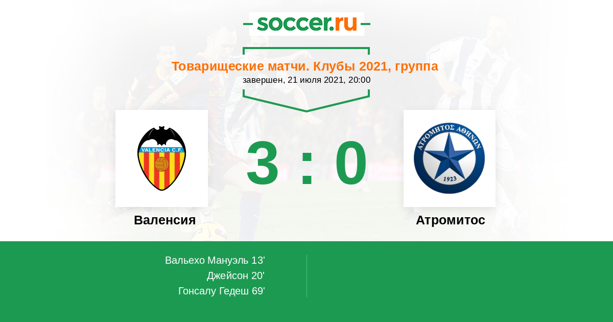 Протокол матча Валенсия против Атромитос