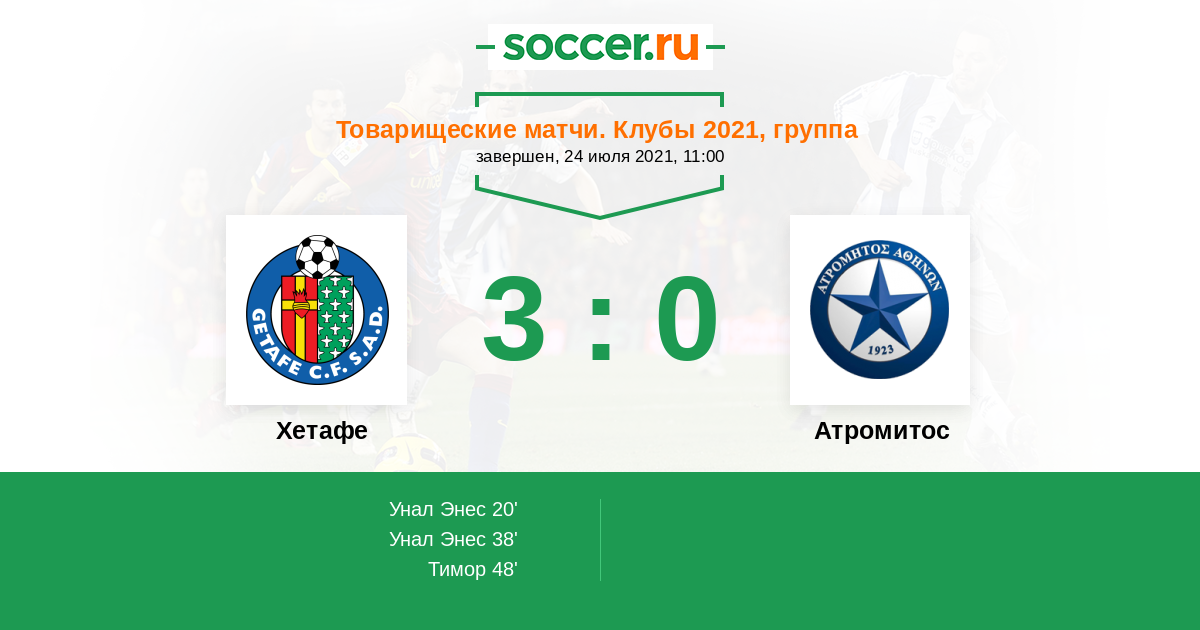 Протокол матча Хетафе против Атромитос