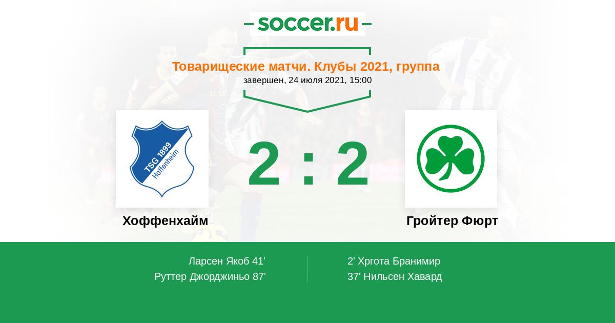 Протокол матча Хоффенхайм против Гройтер Фюрт