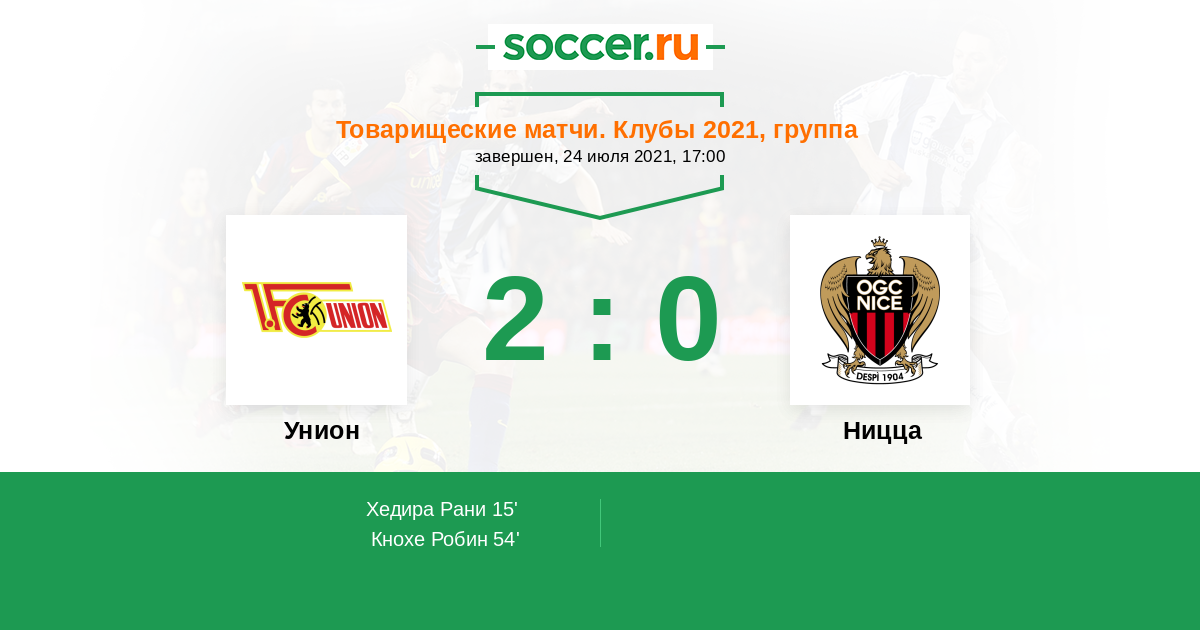 Протокол матча Унион против Ницца