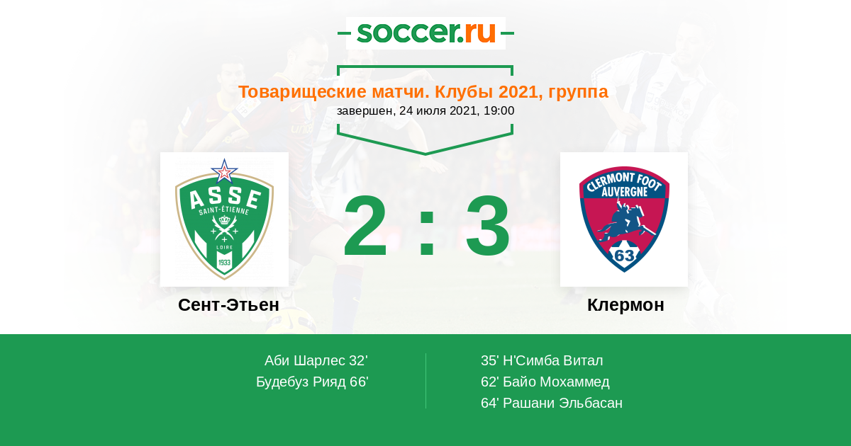 Протокол матча Сент-Этьен против Клермон