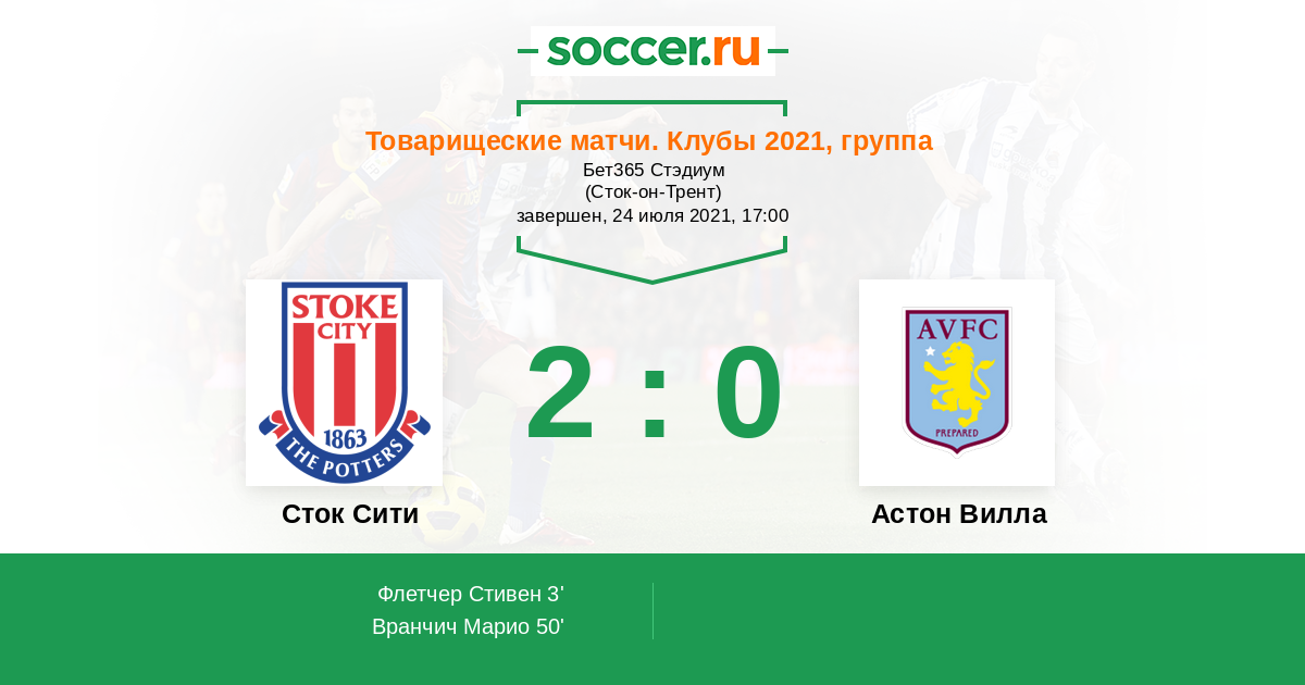 Протокол матча Сток Сити против Астон Вилла