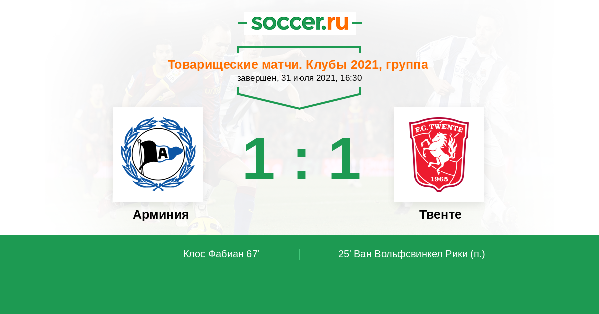 Протокол матча Арминия против Твенте