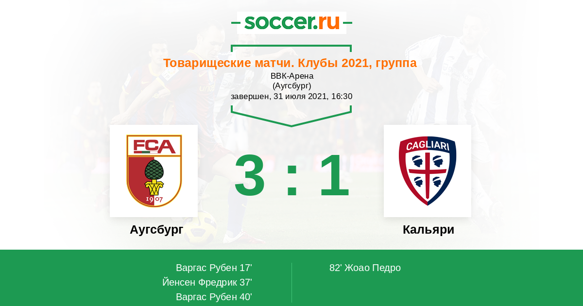 Протокол матча Аугсбург против Кальяри