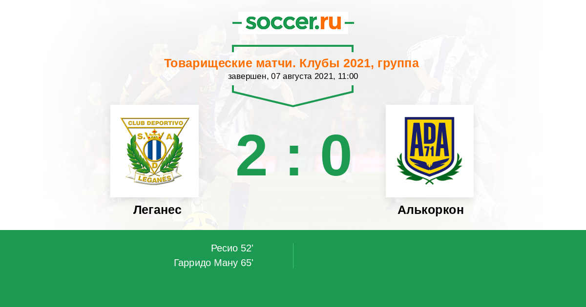 Протокол матча Леганес против Алькоркон