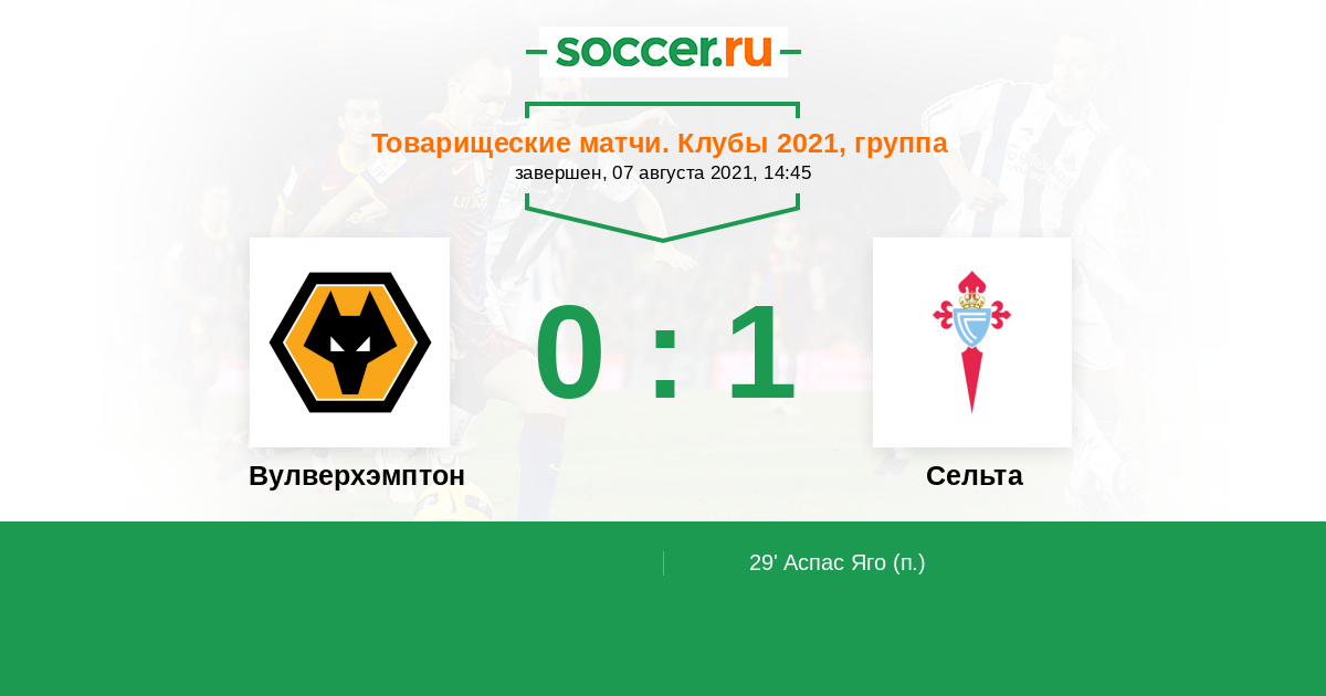 Протокол матча Вулверхэмптон против Сельта