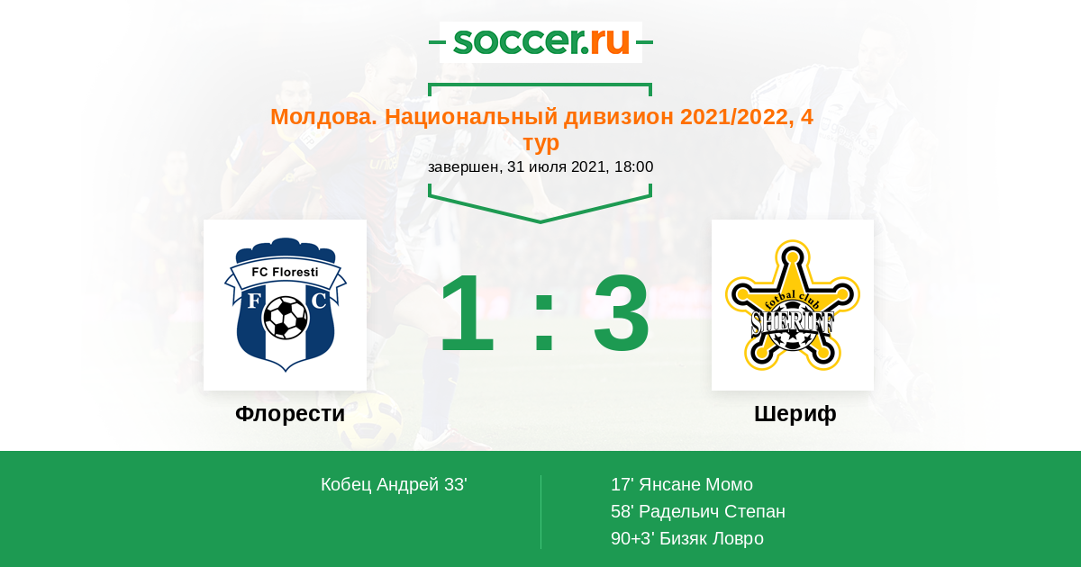 Протокол матча Флорести против Шериф