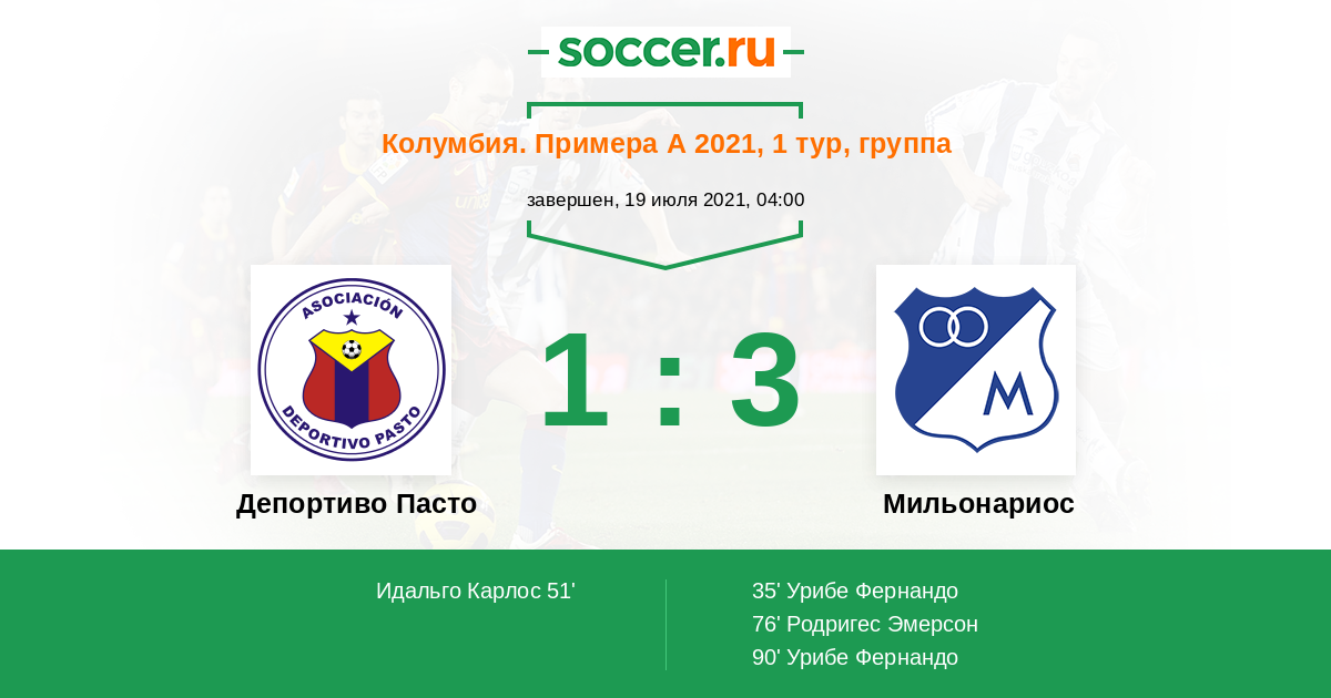 Протокол матча Депортиво Пасто против Мильонариос