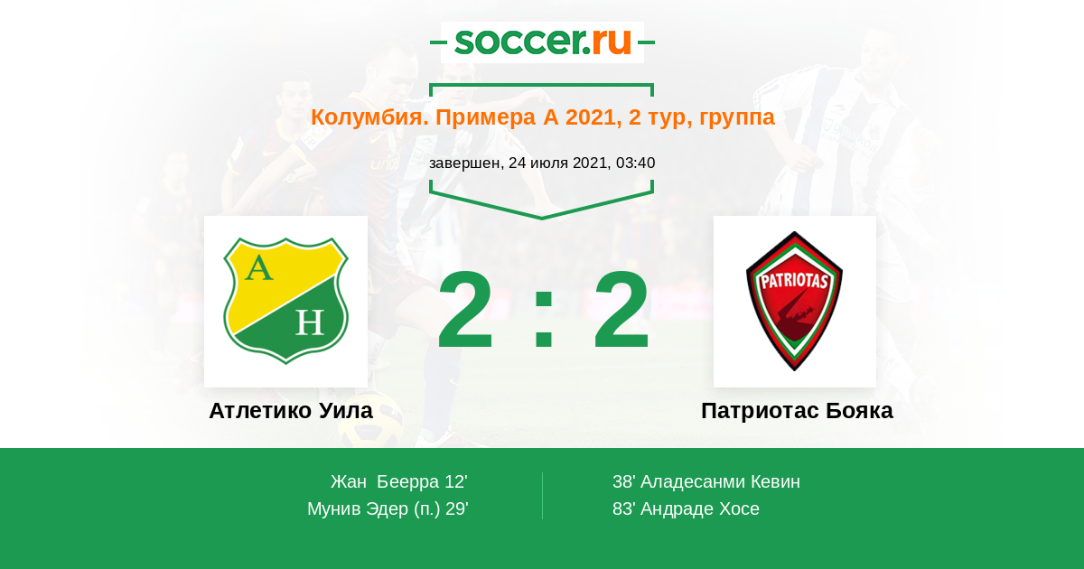Протокол матча Атлетико Уила против Патриотас Бояка