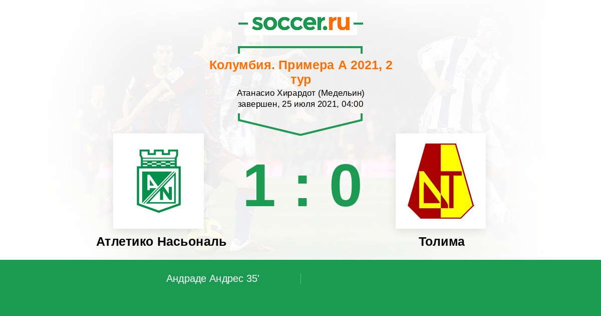 35' (1:0) Андраде Андрес (10) (Дукуэ Джефферсон (9))