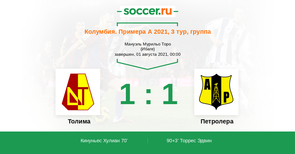Протокол матча Толима против Петролера