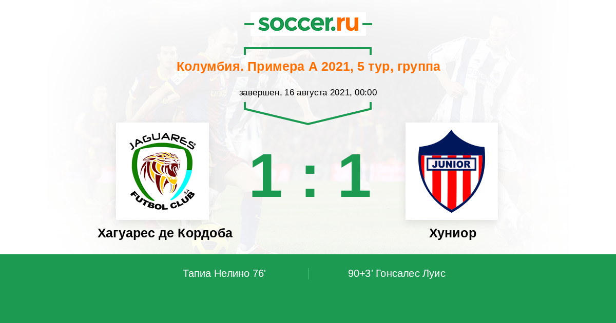 Протокол матча Хагуарес де Кордоба против Хуниор