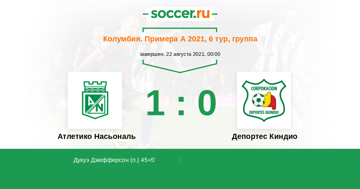 Протокол матча Атлетико Насьональ против Депортес Киндио