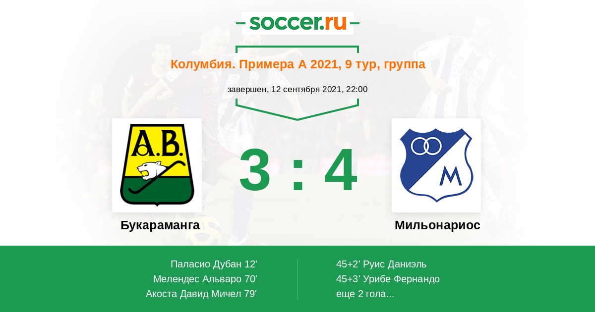 Протокол матча Букараманга против Мильонариос