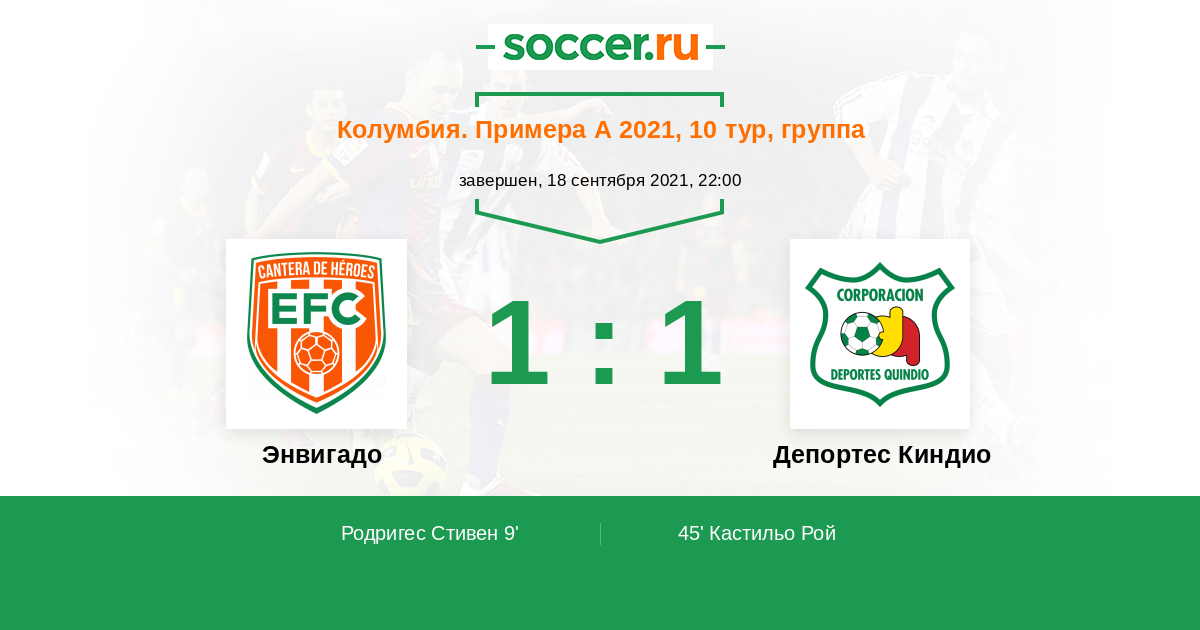 Протокол матча Энвигадо против Депортес Киндио