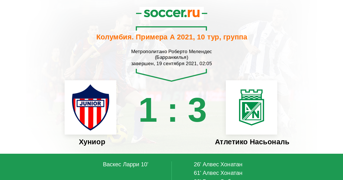 Протокол матча Хуниор против Атлетико Насьональ