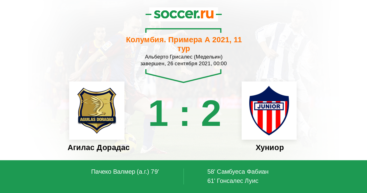 79' (1:2) Автогол Пачеко Валмер (15)