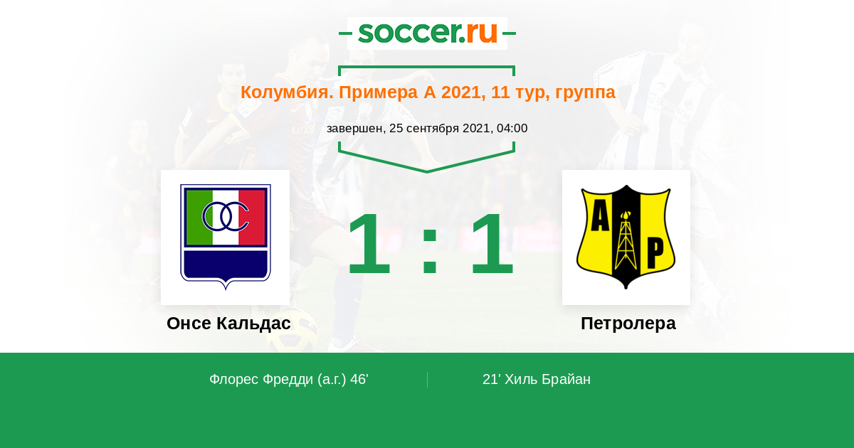 Протокол матча Онсе Кальдас против Петролера