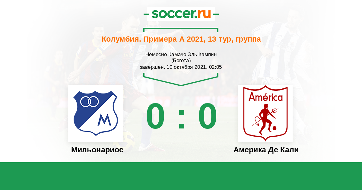 Протокол матча Мильонариос против Америка Де Кали