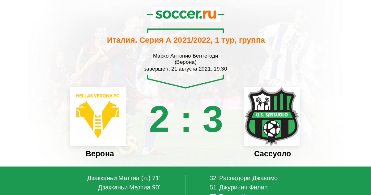 Протокол матча Верона против Сассуоло