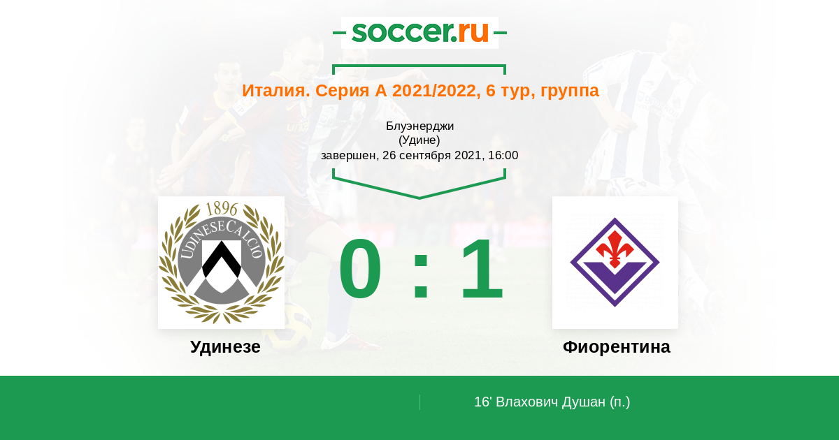 Протокол матча Удинезе против Фиорентина