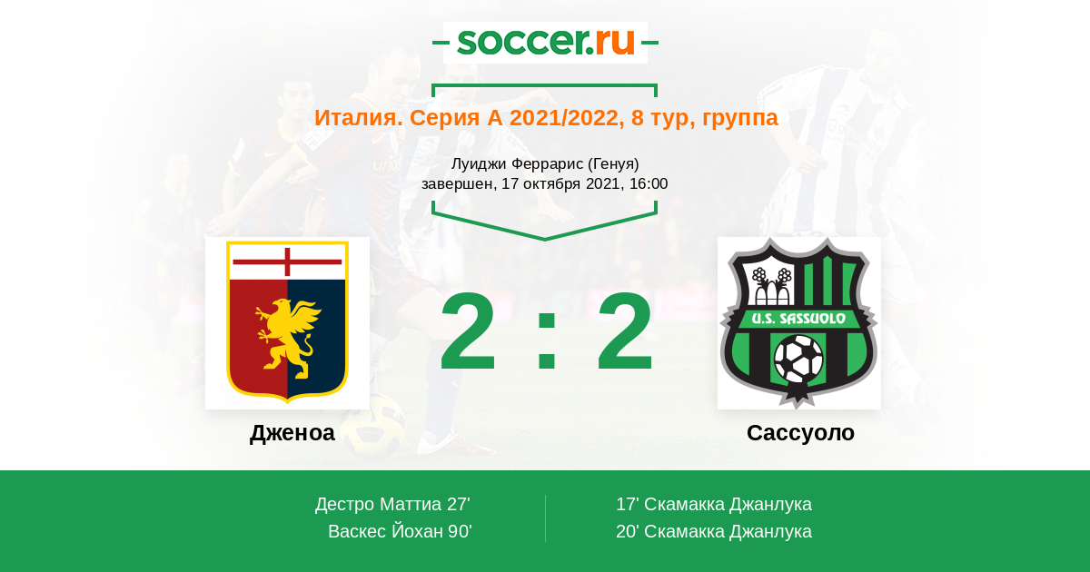 Протокол матча Дженоа против Сассуоло