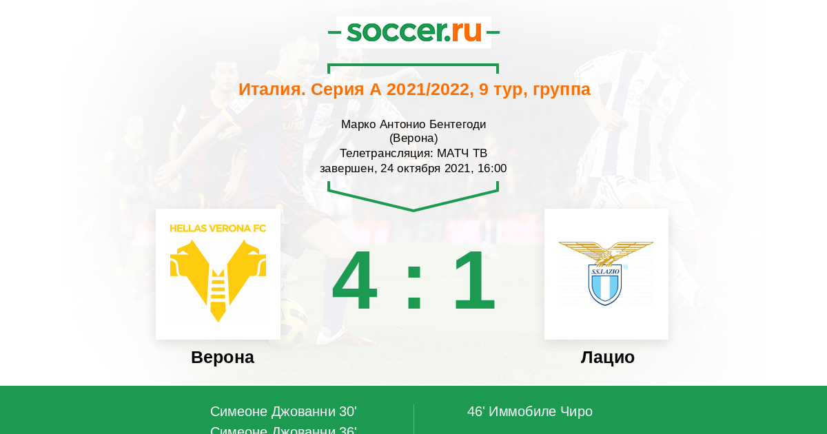 Протокол матча Верона против Лацио