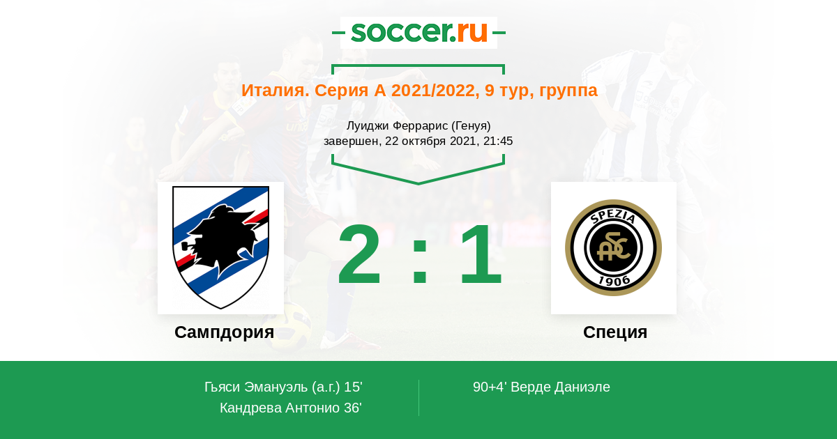 Сампдория справедливо считается букмекерами фаворитом матча. Состав у нее более сильный чем у Специи плюс играют дома и должны добиться победы но Специи по силам огорчить голкипера генуэзцев. Они тоже много забивают.