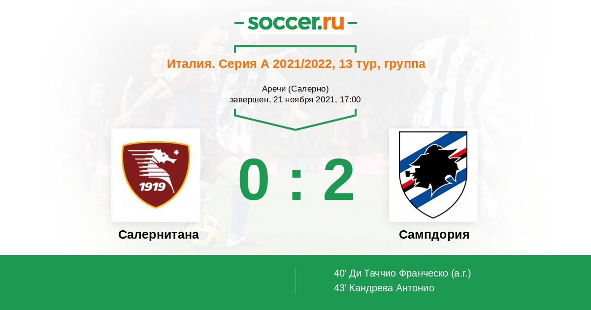 Протокол матча Салернитана против Сампдория
