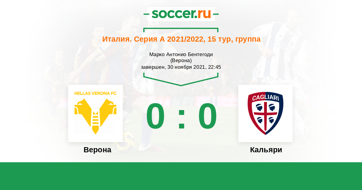 Протокол матча Верона против Кальяри