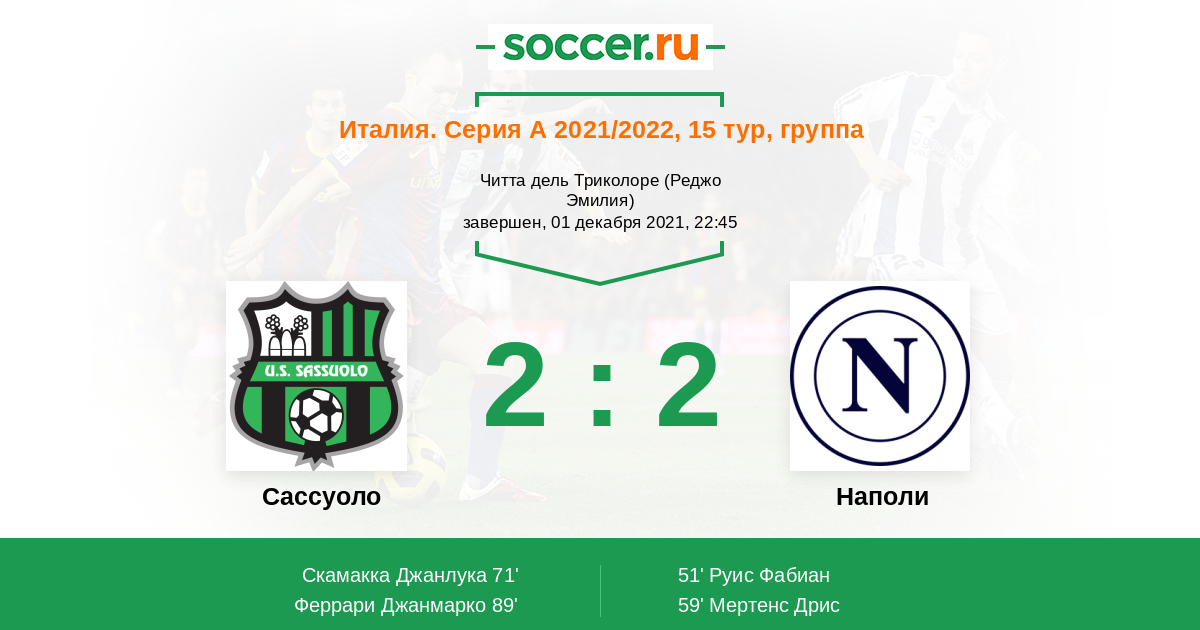 Протокол матча Сассуоло против Наполи