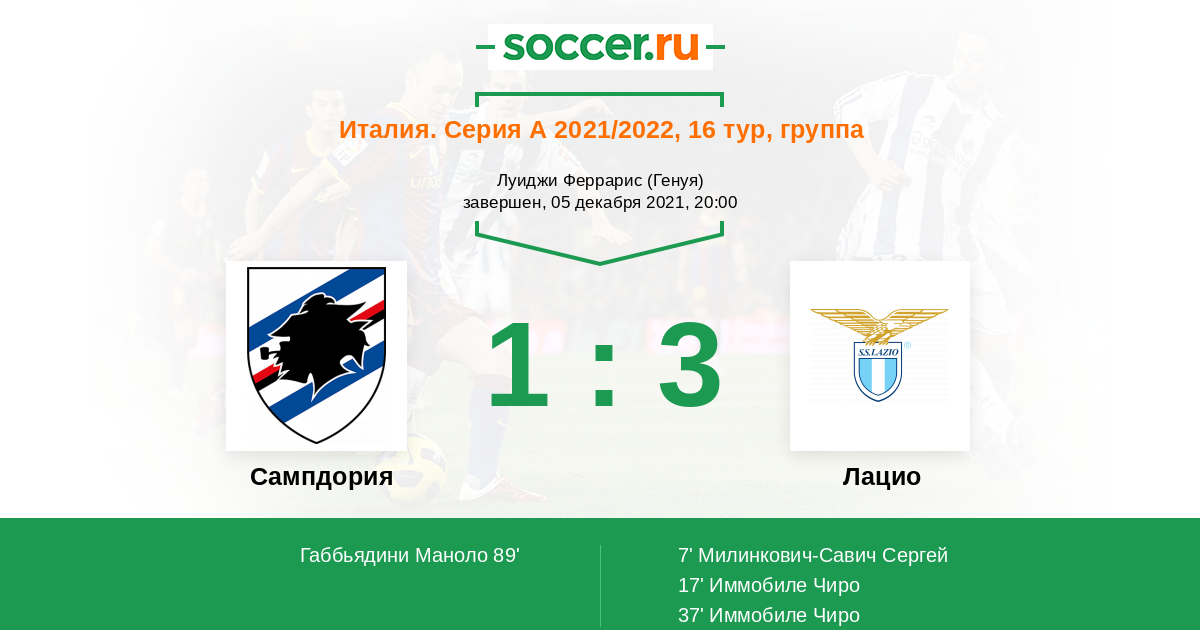 Протокол матча Сампдория против Лацио
