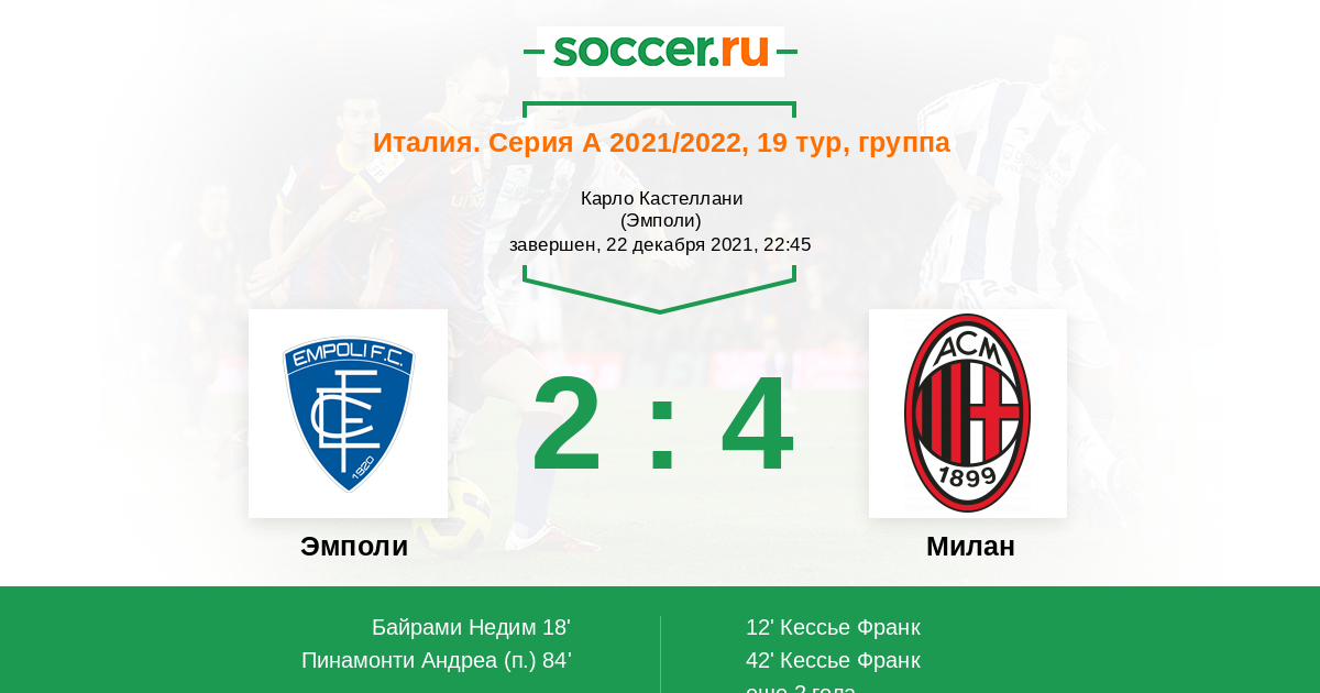 Протокол матча Эмполи против Милан