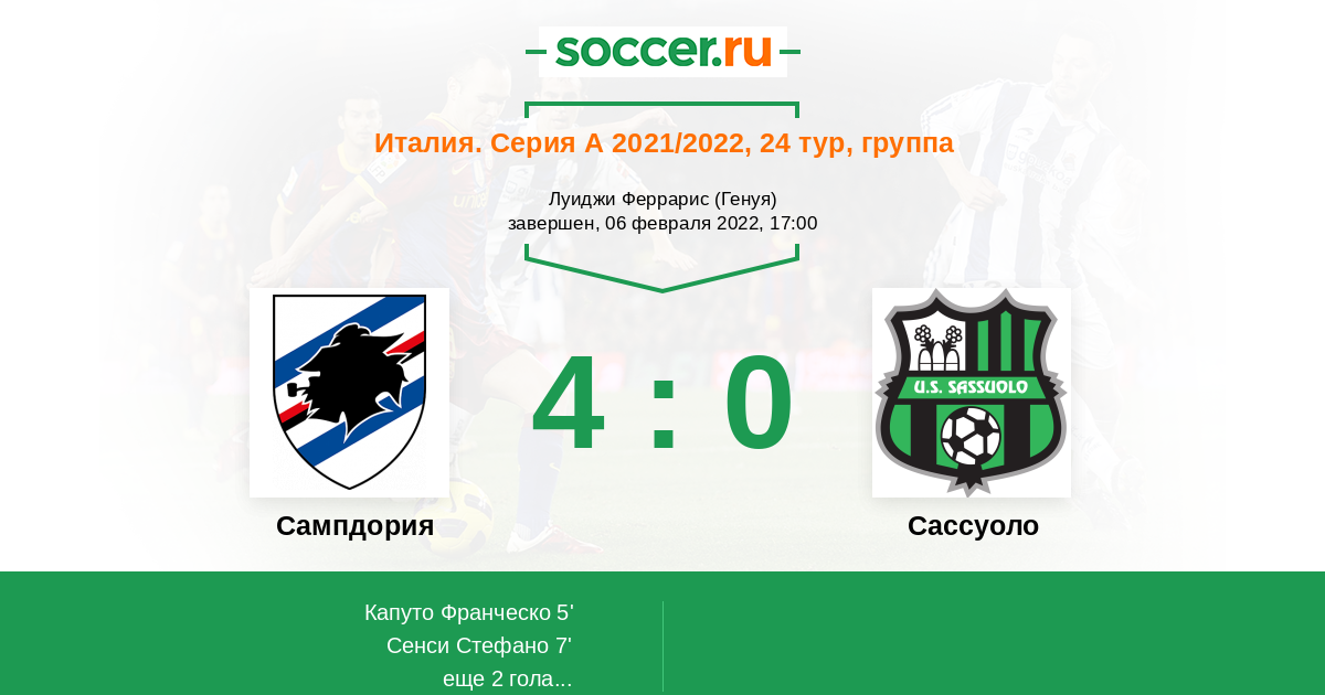 Протокол матча Сампдория против Сассуоло