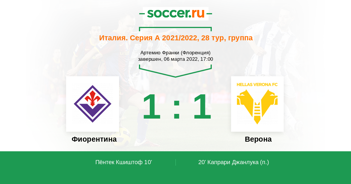 Я думаю что в этом противостоянии более чем явным фаворитом является команда хозяев поля Фиорентина . Но команда гостей Верона обязательно забьёт свой гол . В любом случае матч будет боевой и очень интересный и конечно же с забитыми мячами с обеих сторон . ТБ 2.50.