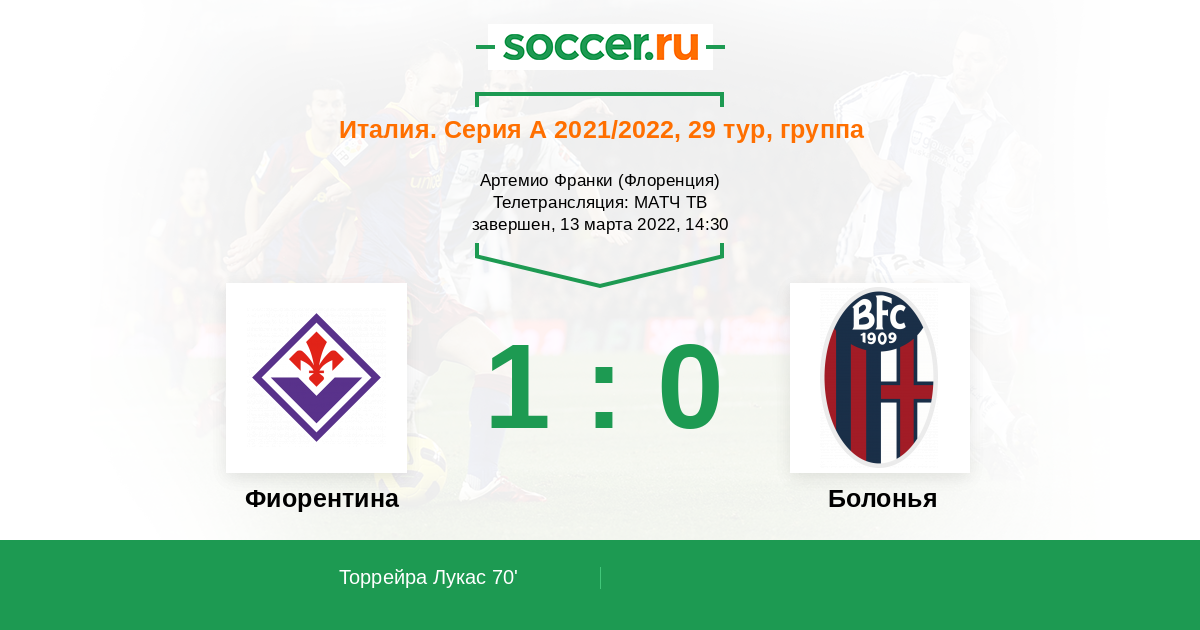Протокол матча Фиорентина против Болонья
