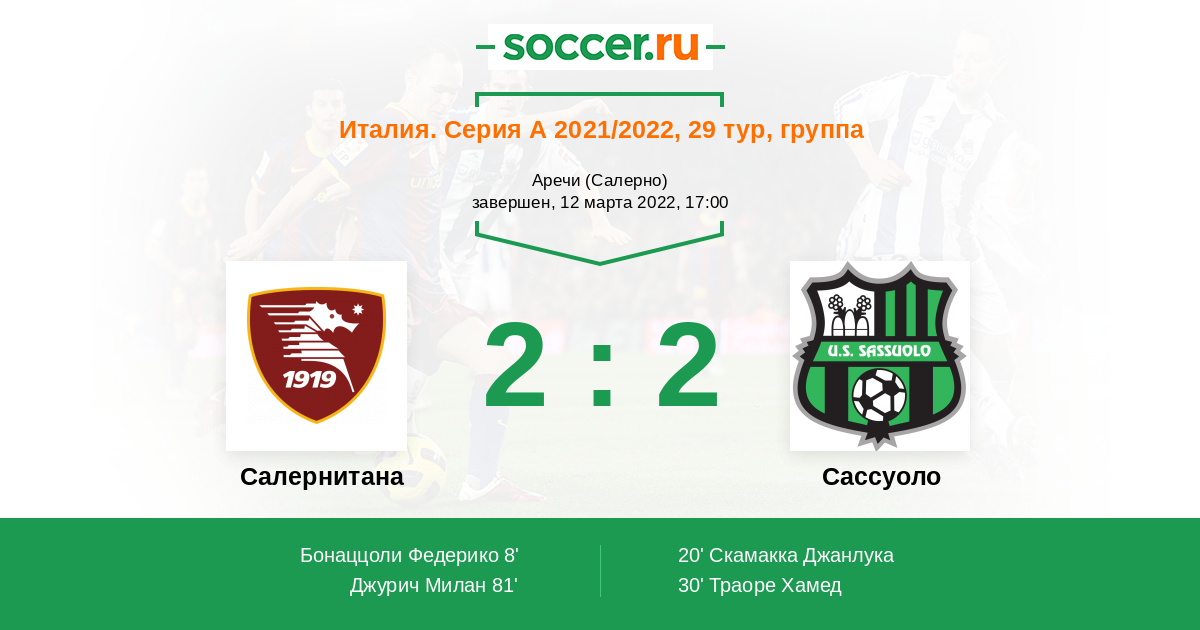 «Салернитана» считается первой в списке «на выход» по итогам сезона и не может найти противодействия всем оппонентам дивизиона. «Сассуоло» продолжает уверенно подниматься в таблице и явно рассчитывает проехаться по главному неудачнику чемпионата.