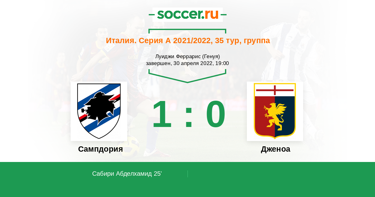 Протокол матча Сампдория против Дженоа