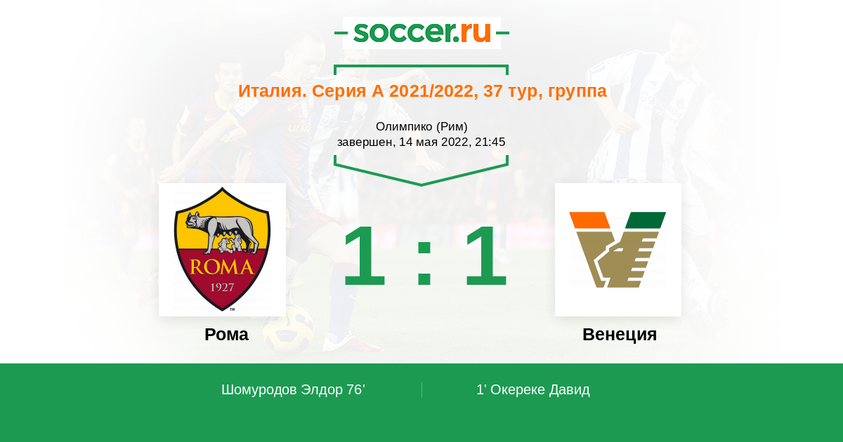 Рома уже пути к финалу Лиги конференций, но при этом осталось решить задачку по попаданию в Лигу Европы через чемпионат, если вдруг не получится завоевать еврокубковый трофей. Впереди Венеция, ее положение катастрофическое: пять очков до зоны спасения и два тура до финиша. Нет команды опаснее той, что ведёт борьбу за спасение, но римляне на финише сохранили нормальную форму и пусть не смущают вас четыре матча без побед в Серии А. Моур любит трофеи и делал ставку на матчи Лиги конференций, победить Венецию ― дело техники.