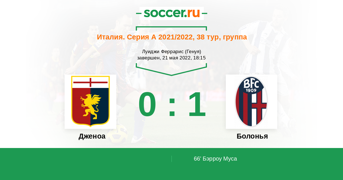 Протокол матча Дженоа против Болонья