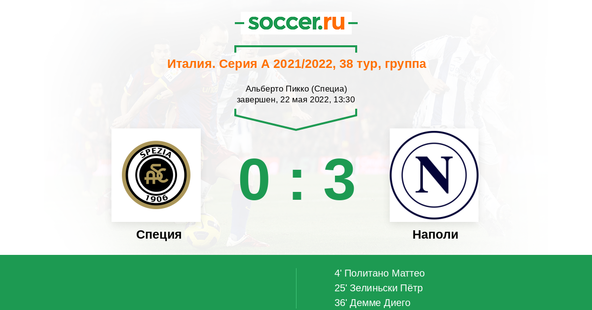 36' (0:3) Демме Диего (4) (Петанья Андреа (37))