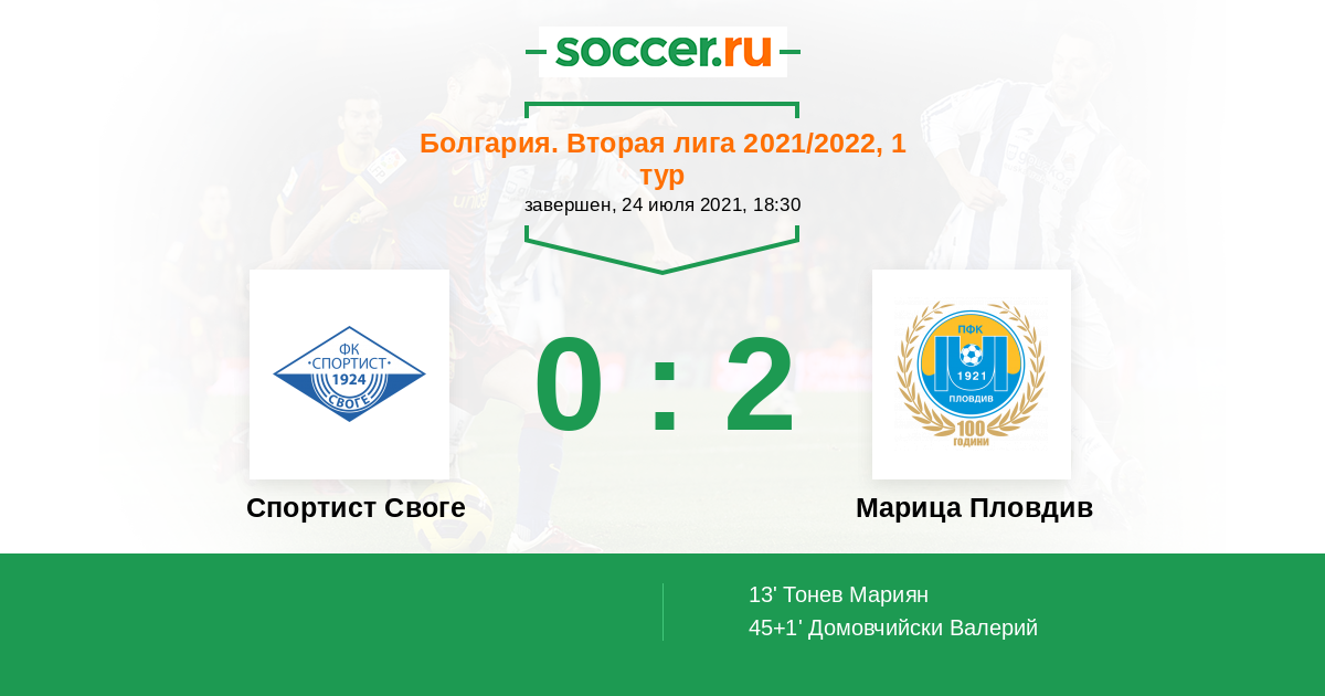 Протокол матча Спортист Своге против Марица Пловдив