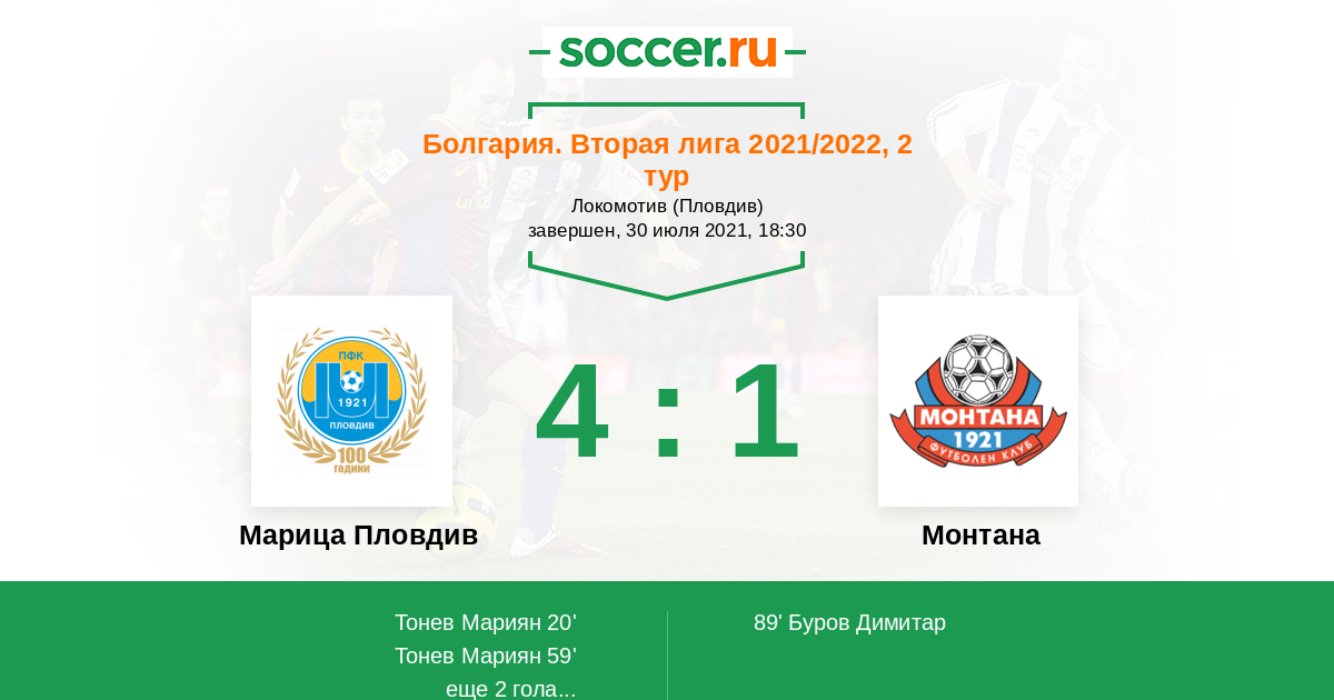 Протокол матча Марица Пловдив против Монтана