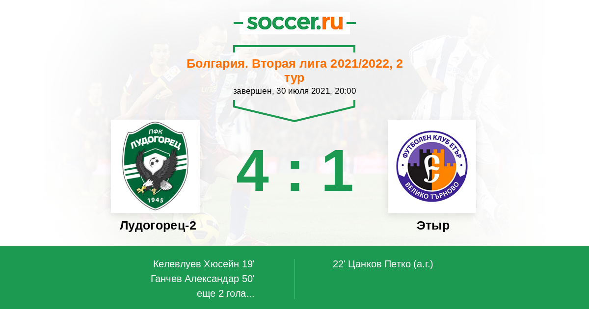 Протокол матча Лудогорец-2 против Этыр