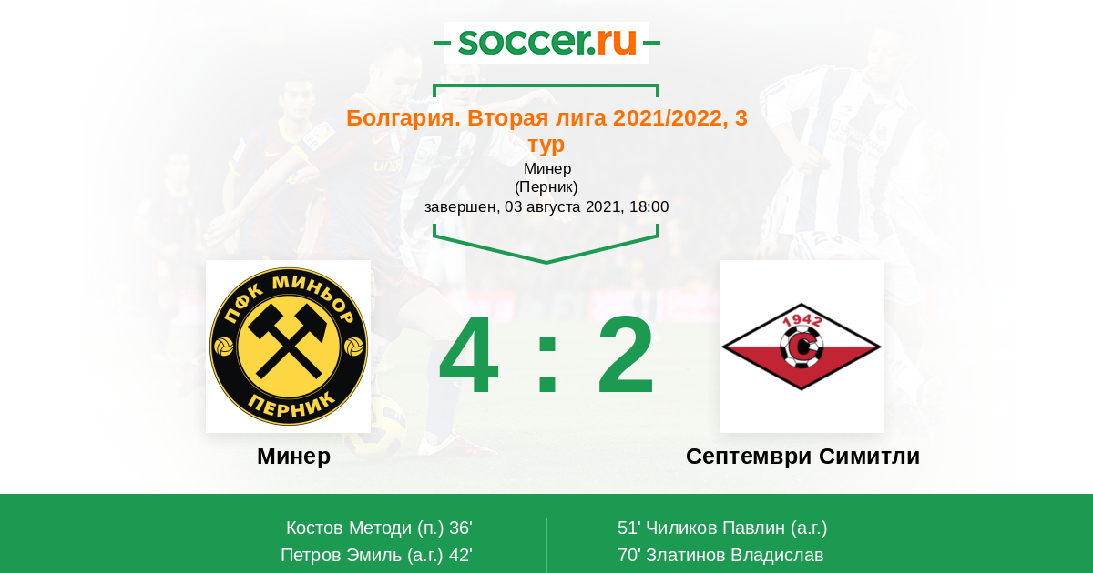 Протокол матча Минер против Септември Симитли