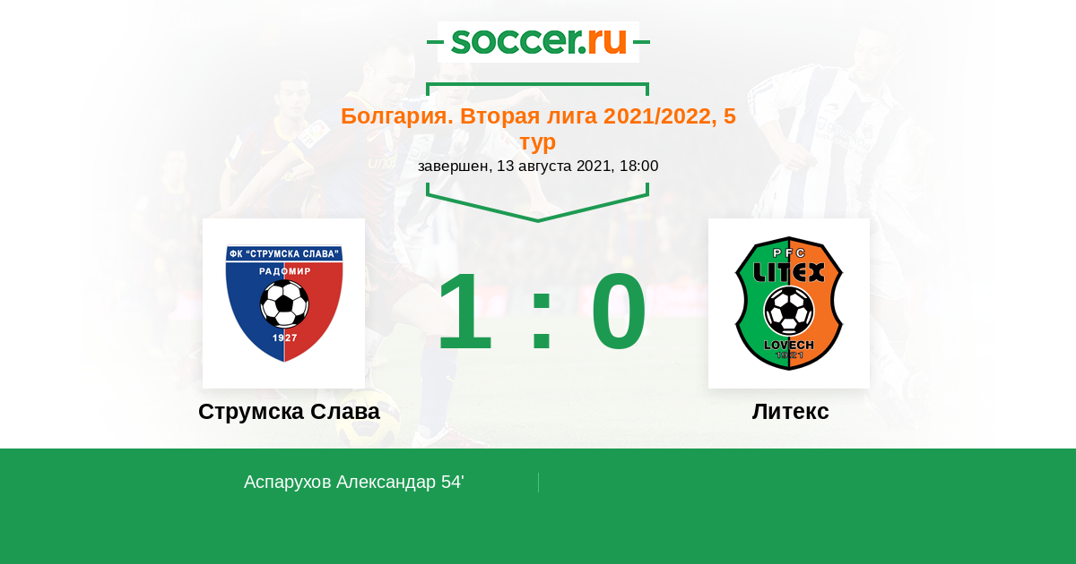 Протокол матча Струмска Слава против Литекс