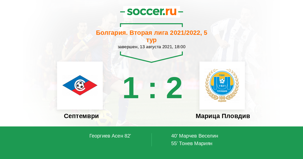 Протокол матча Септември против Марица Пловдив