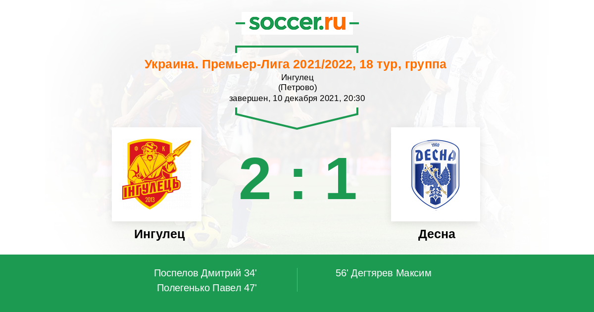 Протокол матча Ингулец против Десна